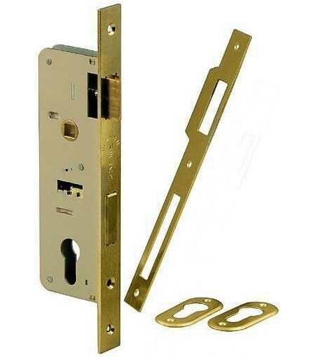 Serrature Welka da infilare Finitura Ottonata Quadro 8 Catenaccio a 2 Mandate Scrocco in Ottone Reversibile Frontale E Piastra Bord.Quadro (Senza Cilindro Sagomato) Mm. 50 ...