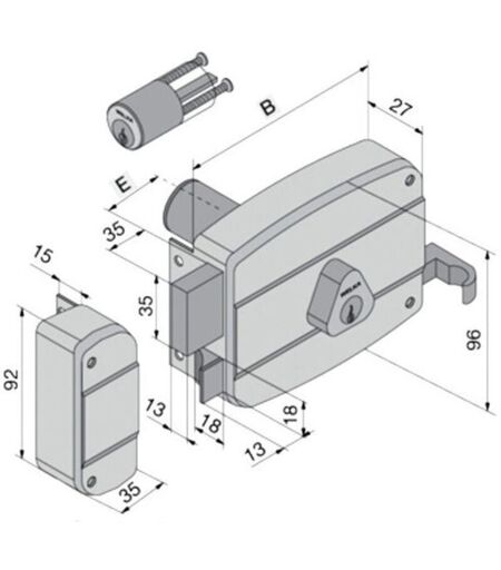 Serratura verniciata nera Applicare legno Tirante e cilindro interno Catenaccio e scrocco Cilindro 609.05.00.0 3 chiavi ...