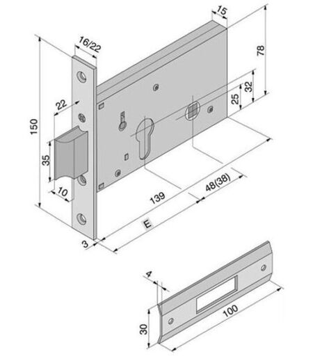 Codice: 12150020 Marca: WELKA. Serratura montanti alluminio infilare Acciaio verniciato nero - Incontro Scrocco reversibile 1 manda ...