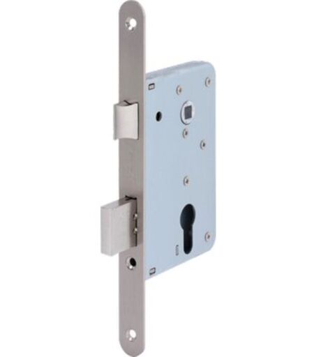Per cilindro sagomato. Scrocco. Chiusura con catenaccio a 2 mandate da Mm. 26. Quadro passante da Mm. 8. Frontale in acciaio zincato con bordo tondo da Mm. 20x230. Altezza scatola Mm. 130. In dotazione: 3 chiavi piatte. ...