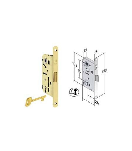 mm.50 bordo acciao ottonato lucido verniciato scatola in acciaio, quadro maniglia mm.8 in dotazione 1 chiave interasse mm.90 frontale bordo tondo reversibile anche se già installata sulla porta Pezzi per confezione primaria: 1,0 Larghezza 2,8 Lunghezza 5,2 Altezza 12,4 Peso 0,32 ...
