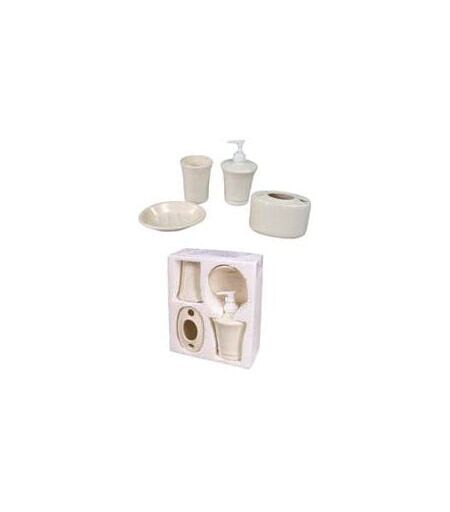 1 bicchiere, 1 portasapone, 1 portaspazzolini, 1 dosatore per sapone liquido, imballo: 8 confezioni colore bianco Pezzi per confezione primaria: 8,0 Larghezza 26 Lunghezza 41 Altezza 40 Peso 12 ...