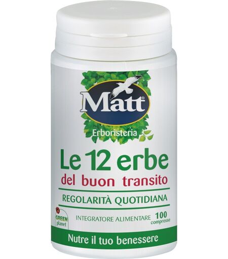 Matt Le 12 erbe - Descrizione Un buon transito intestinale è alla base del nostro benessere. Le 12 erbe del buon transito Matt, nella sua esclusiva formulazione, unisce principi vegetali, quali prugna, boldo, malva, per aiutare il transito intestinale. Ingredienti Agenti di carica: sorbitolo, cellu… ...