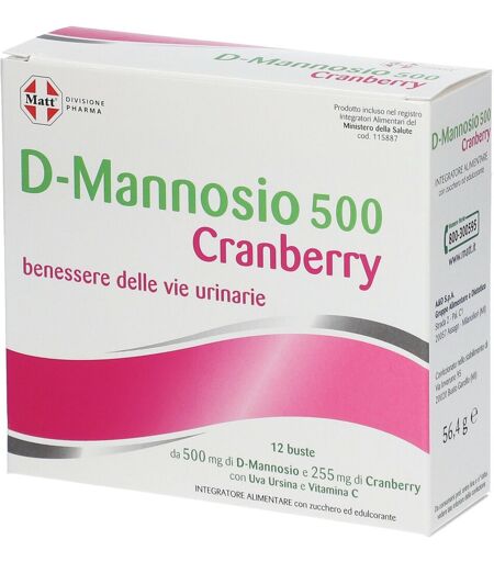 Matt Pharma D-Mannosio 12 busteIntegratore Benessere Vie UrinarieA cosa serve Matt Pharma D-MannosioD-Mannosio 500 Cranberry è un integratore alimentare a base di D-Mannosio, Cranberry, Uva Ursina e Vitamina C. Il Cranberry è utile per il drenaggio dei liquidi in ec ...