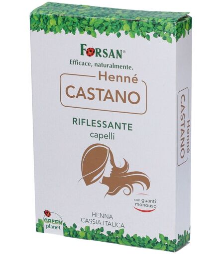 Forsan® Hennè Castano Gli Henné sono piante conosciute fin dall’antichità come coloranti naturali e sono tradizionalmente indicate nella letteratura erboristica per tingere i capelli, rafforzarli e mantenerli sani. Gli Henné agiscono sulla superficie esterna dei capelli, creando una guaina impermeabile che li protegge dagli agenti esterni rendendoli più resistenti e visibilmente luminosi. Henné Castano Forsan, a base di Lawsonia Inermis e Cassia Obovata, dona ai capelli riflessi castani. Nei capelli chiari risalta la loro tonalità con riflessi castano dorato o ramati, nei capelli scuri rende la naturale tonalità più brillante. Viene utilizzato anche per coprire i capelli bianchi o grigi. Modo d'uso: Utilizzare 1 busta per i capelli corti, 2 buste per i capelli lunghi. L’Henné Castano contiene coloranti vegetali e si applica sui capelli puliti per facilitare la presa del colore. Mescolare la polvere con acqua fino ad ottenere una crema densa e priva di grumi. Prima di procedere pettinare i capelli eliminando tutti i nodi. Proteggere le mani con i guanti e procedere con l’applicazione del composto sui capelli per tutta la loro lunghezza, prendendo una ciocca alla volta. Per distribuire il composto, aiutarsi con un pennello o stenderlo semplicemente con le dita. Pulire accuratamente il composto in eccesso in prossimità dell’attaccatura dei capelli, raccoglierli e avvolgerli con la pellicola trasparente. Lasciare in posa da 20 minuti a 1 ora a seconda dell’intensità di colore che si vuole ottenere. Risciacquare accuratamente ed infine procedere con lo shampoo.. Ingredienti: Lawsonia Inermis Leaf Powder, Punica Granatum Peel Powder, Rheum Officinale Root Powder, Haematoxylon Campechianum Bark Powder, Cassia Obovata Leaf Powder, Ferrous Sulfate. Formato:Confezione 2 buste monodose da 50 g con guanti monouso Contenuto 100 g ...