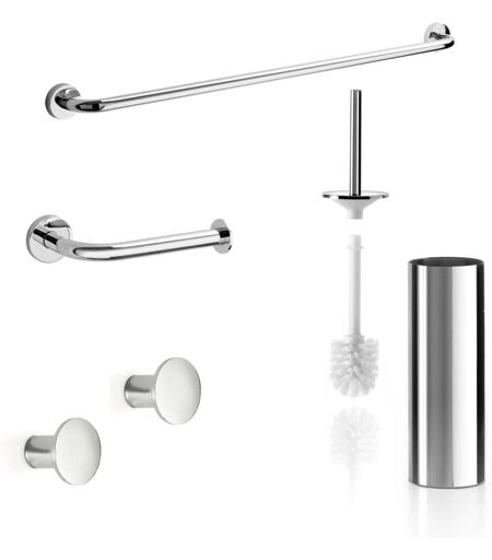 Questo set di accessori bagno della collezione One by Inda in cromo lucido è composto da due appendiabiti, un portarotolo reversibile destro o sinistro, un porta asciugamani da 50 cm e uno scopino da parete o da appoggio. One, una serie Inda dal nome semplice che racchiude in sè tutta l'arte dei designer Matteo Thun e Antonio Rodriguez. Nella collezione One si trovano accessori da bagno dallo stile classico contemporaneo, con linee pulite e chiare. È previsto fissaggio a parete, con kit viti e tasselli in dotazione, ancora più semplice grazie ad un innovativo sistema a scatto CLICK di Inda. ...