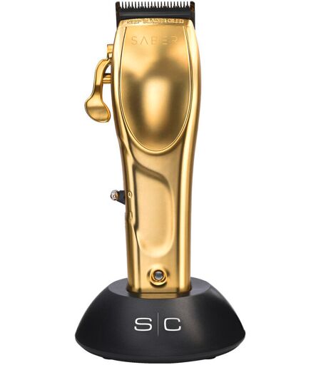 Il tagliacapelli Saber si tiene comodamente in mano e il suo motore digitale senza spazzole funziona a 7.500 giri al minuto per un taglio facile e uniforme. Il tagliacapelli è fornito in un alloggiamento di metallo in un elegante colore oro opaco. Il coperchio trasparente in dotazione può essere fissato semplicemente allentando le viti e rivelando il motore. Set di taglio FADE Black Diamond Carbon DLC da 45 mmRegolabile a zero-gapKit di staffe a conicità stretta o allungata per opzioni di conicità lunga o cortaDurevole alloggiamento in metallo pieno8 pettini magnetici doppi di alta qualità (da 1,5 a 19 mm)Comando a leva personalizzabile per sistema a scatto o freestyleKit di pulizia e manutenzione, docking station inclusiGaranzia del dispositivo 2 anni Dati tecnici Set di lame: FADE Black Diamond Carbon DLCLarghezza del set di taglio: 45 mmLunghezza di taglio: 0,3 - 1,5 mmAzionamento: digitale, motore brushless 7.500 giri/min.Tempo di funzionamento: 195 min. batteria agli ioni di litioTempo di ricarica: 120 min.Peso: 400 g ...
