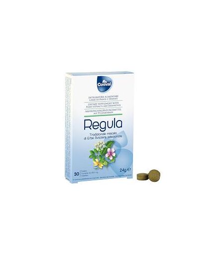 Regula - Descrizione Integratore alimentare a base di piante e derivati che può favorire la regolare motilità gastrointestinale e l'eliminazione dei gas. Contiene Senna (Cassia angustifolia Vhal.) e Frangola (Rhamnus frangula L.) che favoriscono la regolarità del transito intestinale Carvi (Carum… ...