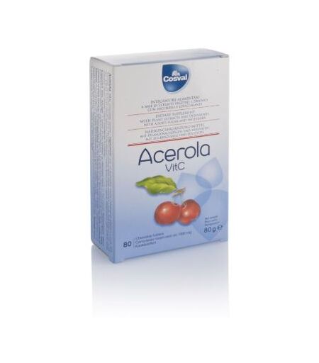 Acerola VitC - Descrizione Integratore alimentare a base di estratti secchi di acerola (Malpighia glabra L.) e rosa canina (Rosa canina L.) che svolgono azione di sostegno e ricostituente coadiuvando le naturali difese dell'organismo rendendo disponibile vitamina C (Acido L - ascorbico). La presenz… ...
