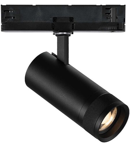 Collezione EOS ORGANIZZA LA TUA LUCE Faretto regolabile e dimmerabile montato su binario per interni con sorgente LED integrata ed emissione di luce diretta.. Proiettore cilindrico in alluminio estruso con ottica simmetrica e fascio di apertura variabile da stretto ad ampio (20°-55°), adatto per installazione su binario trifase. ...
