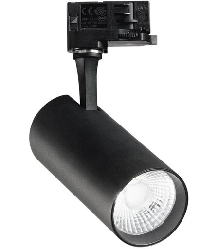 Collezione Fox PROIETTA LA LUCE Illuminazione a Binario Contemporaneo Fox Alluminio Nero Led Integrato 15W 4000K IP20 A++ h.21,4 D. L.7,5 P.7 Lampadina inclusa. Proiettore cilindrico in alluminio estruso, adatto per installazione su binario trifase. Verniciatura a polveri in bianco, nero oppure ottone satinato, testata girevole 350° e orientabile fino a 90°. ...