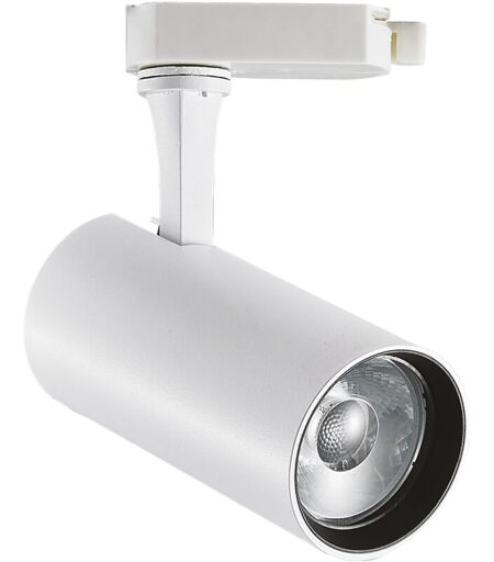 Collezione Fox PROIETTA LA LUCE Illuminazione a Binario Contemporaneo Fox Alluminio Bianco Led Integrato 25W 4000K IP20 A++ h.21,4 D. L.7,5 P.7 Lampadina inclusa. Proiettore cilindrico in alluminio estruso, adatto per installazione su binario trifase. Verniciatura a polveri in bianco, nero oppure ottone satinato, testata girevole 350° e orientabile fino a 90°. ...