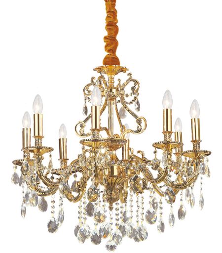 Collezione GIOCONDA MAESTOSI LAMPADARI Lampadario a 8 luci con corpo luce in fusione di metallo con finitura oro. Pendagli ottagonali e tondi in cristallo molato. Copricatena in velluto.. ...