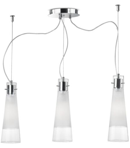 Collezione KUKY ILLUMINA CON STILE IL TUO LIVING Sospensione moderna a 3 luci con montatura in metallo cromato, con diffusori a cono in vetro pirex smerigliato a sabbia nella zona centrale.. ...