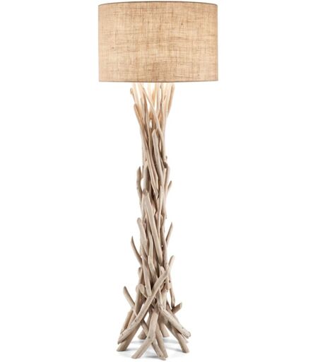 Collezione DRIFTWOOD FASCI DI LEGNO Piantana a 1 luce con montatura in metallo. Elementi decorativi con rami di legno naturale. Diffusore in lamina di pvc rivestito con tessuto canvas.. ...
