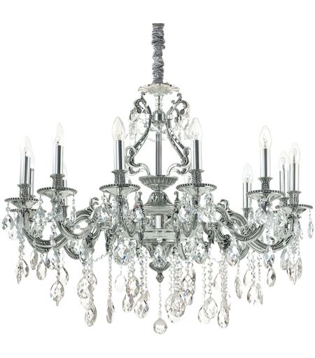 Collezione GIOCONDA MAESTOSI LAMPADARI Lampadario a 12 luci con corpo luce in fusione di metallo con finitura argento antico. Pendagli ottagonali e tondi in cristallo molato. Copricatena in velluto.. ...