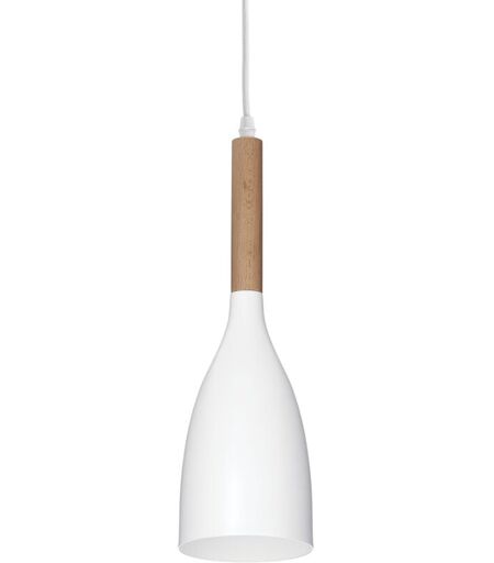 Rosone e diffusore in metallo rifinito con vernice opaca bianca o nera e con dettaglio in legno naturale. Cavo in tessuto nero Ø 110 x H min 595 / max 2345 mm max 1 x 40W E14 IP:20 ...