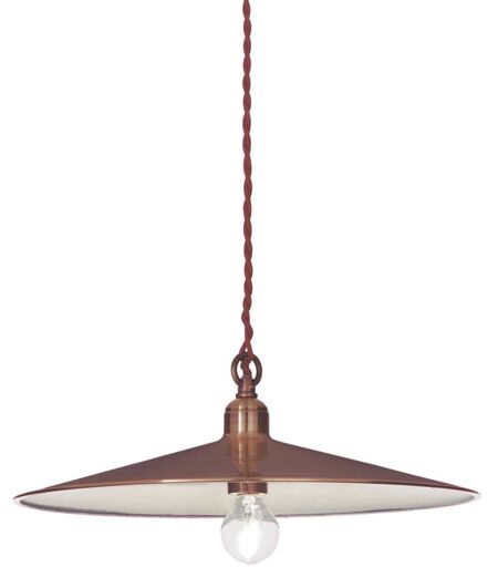 Collezione CANTINA STILE COUNTRY Sospensione a 1 luce con montatura, diffusore e copriportalampada in metallo color rame.. Cavo elettrico rivestito in tessuto e intrecciato. Disponibile in varie finiture. ...