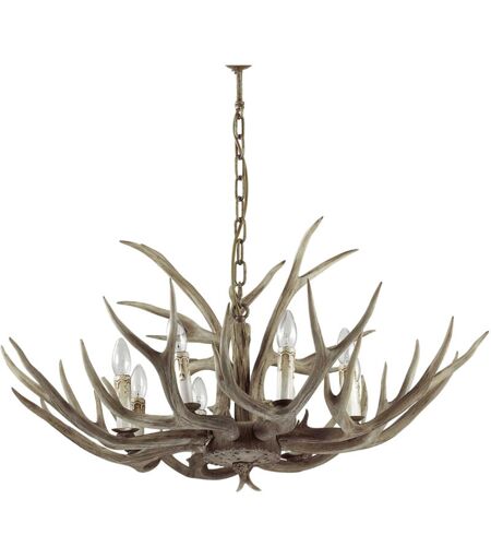 Collezione CHALET INTRECCIO DI RAMI Lampadario a 8 luci con struttura portante in metallo.. Elementi decorativi in resina lavorata artigianalmente e dipinta a mano come fedele riproduzione di corna e legno intagliato. ...