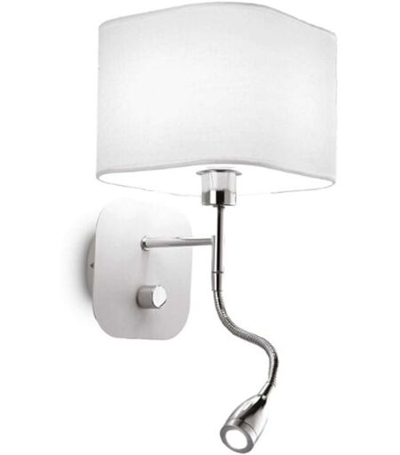 Lampada a parete Ideal Lux Holiday AP2, con le seguenti caratteristiche: Alimentazione 100-240V AC Frequenza: 50/60 Hz Potenza: max 1 x 40W / 1.5W Attacco: E14 Emissione: diffusa più diretta Consumo massimo max 40W / LED 1.5 W Temperatura di colore: 3000 Kelvin (luce calda) Durata LED: (t. 25°c) 20000 ore LED CRI RA > 80 Non dimmerabile Lampadina inclusa Fascio luminoso: 23 gradi Montatura in metallo verniciato opaco. Paralume con lamina di pvc rivestita in tessuto. Interruttore unico con controllo indipendente delle due sorgenti luminose. Lampada da parete orientabile per interni con sorgenti multiple, interruttore incorporato e diffusore ed emissione di luce diretta. Altre caratteristiche tecniche: Flusso sorgente: 55 lumen Flusso utile LED: 45 lumen Rischio fotobiologico: 2 Potenza in stand-by: < 0.50 W Peso netto 0.64 kg Classe di isolamento I Grado di protezione IP20 Conformità CE Temperatura d'esercizio: 0° ~ +40 °C Orientabilità: si Installazione: a parete Dimensioni: L 180 x H ...