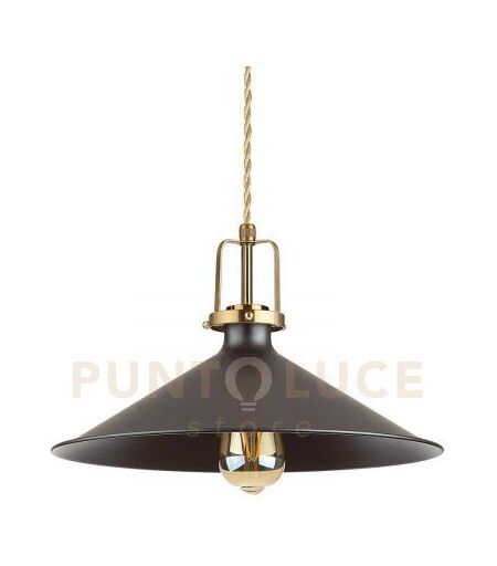 Lampada A Sospensione Con Montatura In Metallo Con Rosone E Diffusore Verniciati., Dettagli In Finitura Oro Satinato. Cavo Elettrico Intrecciato Con Rivestimento In Tessuto. ...