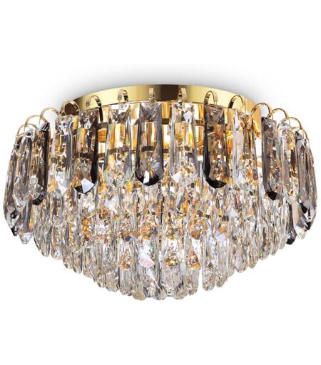 Collezione MAGNOLIA UNA PLAFONIERA CHE SEMBRA UN GIOIELLO Plafoniera circolare diam.45 cm con 7 luci LED G9 max 15 W. Montatura in metallo con finitura oro. Luce tonalità calda 3000 K.. Elementi decorativi in cristallo molato trasparente. Nella parte superiore si alternano elementi traparenti ed elementi fumè. ...