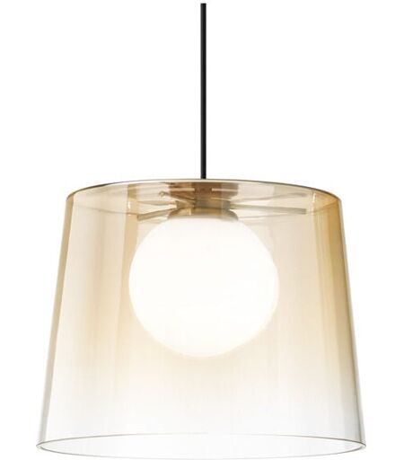 Collezione FADE SIA MODERNO SIA VINTAGE Sospensione a 1 luce realizzata con rosone e montatura in metallo. Paralume in vetro soffiato trasparente con sfumatura galvanica ambra.. Diffusore interno in vetro soffiato bianco acidato. Cavo in pvc nero regolabile in altezza. Lampadine LED G9 3W 3000 K. ...