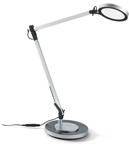 Collezione FUTURA LINEARE E MODERNA Lampada da tavolo moderna a 1 luce con braccio in alluminio e plastica, snodato con cavo a vista in pvc.. Diffusore orientabile a led e interruttore incorporato. Spina con alimentatore. ...