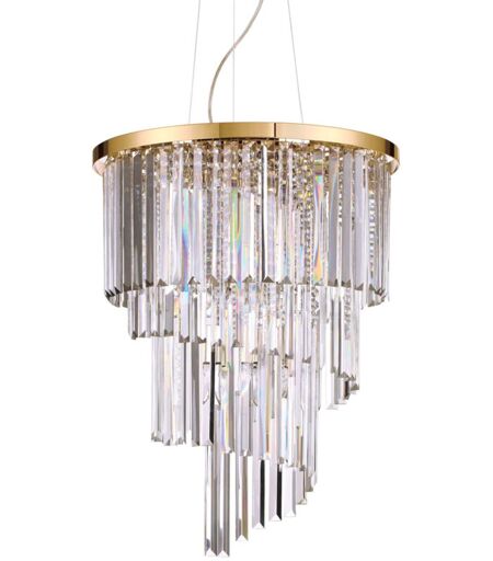 Collezione CARLTON BARRE IN CRISTALLO PER SBALORDIRE Imponente sospensione a 12 luci con montatura in metallo dorato. Elementi decorativicon catene di ottagoni e barre in cristallomolato trasparente.. ...