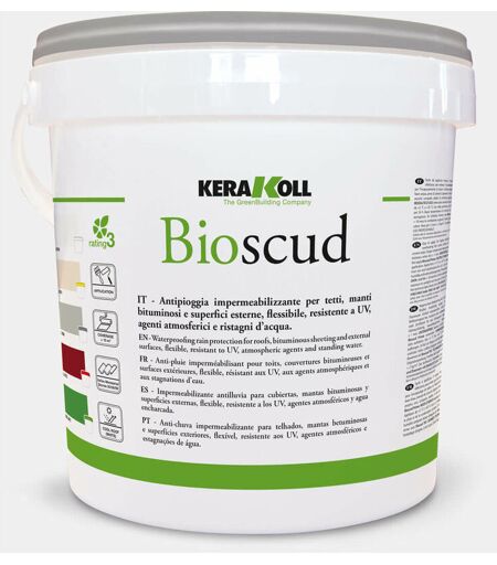 Antipioggia impermeabilizzante colorato per tetti piani e a falde, manti bituminosi e superfici esterne, flessibile, resistente a raggi UV, agenti atmosferici e ristagni d’acqua, ideale nel GreenBuilding. Bioscud è facile da applicare su grandi superfici per realizzare l’impermeabilizzazione e la decorazione protettiva ad alta riflettanza (Cool Roof) anche di manti bituminosi per evitare il riscaldamento dei locali sottostanti. Certificato per l’incapsulamento di lastre in fibrocemento e cemento?amianto. Impermeabilizzazione antipioggia di coperture piane Certificato Cool Roof (bianco) Certificato A, B, C e D D.M. 20/08/99 Pack: secchio 20 kg - 5 kg Resa: ? 2 kg/m 2 Conservazione: ? 18 mesi ...