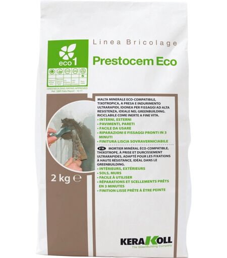 Malta -compatibile, tixotropica, a presa e indurimento ultrarapidi. Idonea per fissaggi ad alta resistenza. Riciclabile come inerte a fine vita. Prestocem è ideale per il fissaggio ad alta resistenza di ringhiere, infissi, mensole, cardini, sanitari, guaine e scatole per impianti elettrici. Contenuto: 2 kg. ...