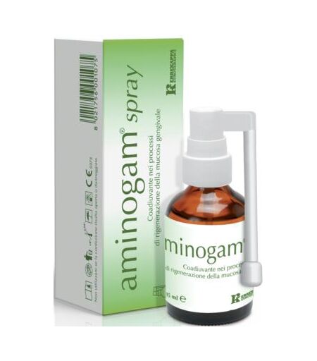 AMINOGAM SPRAY - Coadiuvante nei processi di rigenerazione della mucosa gengivale. Aminogam spray è un dispositivo medico realizzato in conformità alla Direttiva 93/42/CEE MDD. Il prodotto contiene acido ialuronico, componente principale del tessuto connettivo ed aminoacidi costitutivi del collagen… ...