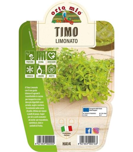 ORTO MIO Timo LimonatoIn vaso 14Il Timo Limonato con il suo gusto intenso di agrumi è insostituibile in cucina per insaporire e rendere più digeribili carni arrosto, sughi e verdure. Eccezionale sulla carne di pollo. Ottimo nei ripieni e piatti di pesce. Super per oli e aceti aromatici ed anche per macedonie, confetture, dolci e sorbetti di frutta. Caratteristiche tecniche Accessori in Dotazione ...