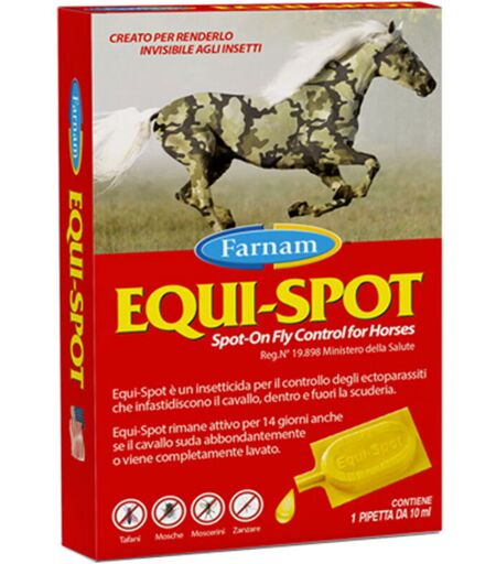 FARNAM EQUI-SPOT insetticida spot-on 1 Pipetta 10 ml per il controllo di tafani, mosche, zanzare e zecche che infastidiscono i cavalli