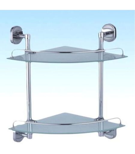 TRADE SHOP Cleafe - Mensola Da Bagno Angolare A 2 Livelli Ripiani Metallo Vetro Arredo Casa -