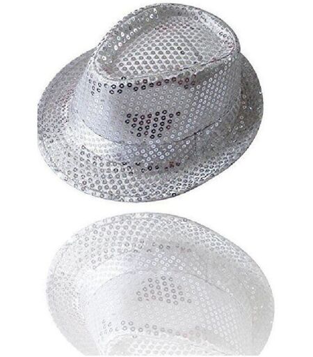 TRADE SHOP TRAESIO Cappello Borsalino Paillettes Argento Spettacolo Teatro Paillette Uomo Donna - -