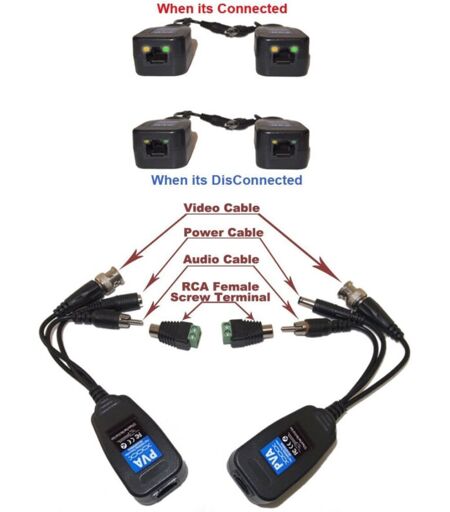 Coppia HD VIDEO Balun AHD /CVI / TVI / ANALOGICO 1 CANALE PASSIVO CON ALIMENTAZIONE E AUDIO CON CONNESSIONE RJ45 FINO AD UNA TRASMISSIONE DI 1080P E CONNETTORE AUDIO RCA.Alta definizione - trasmissione in Real Time - Lunga distanza - Senza perdita di segnaleComposto da un connettore BNC per il video e un connettore per l'alimentazione ed un connettore RCA per la trasmissiione dell'audio.Elementi passivi, composti da un trasmettitore e da un ricevitore in grado di trasmettere, segnali video e alimentazione destinati alla videosorveglianza (Telecamere TVCC, Monitor, TV, DVR, Multiplexer).Connessione diretta alle sorgenti tramite cavi rete CAT 5 o superiori garantendo un'ottima performance di trasmissione su lunghe distanze senza perdite di segnale e interferenzeCarateristiche:* Compatible with all HD-CVI,HD-TVI,HD-AHD.* Video up to 450m for 720P CVI cameras.* Video up to 250m for 1080P CVI cameras.* Video up to 250m for 720P/1080P TVI cameras.* Video up to 320m for 720P AHD cameras.* ...