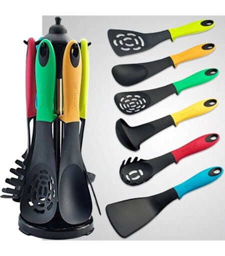 TRADE SHOP TRAESIO - Set 6 Pezzi Utensili Mestoli Cucina Schiumarola Spatola Spaghetti Royalty Line -