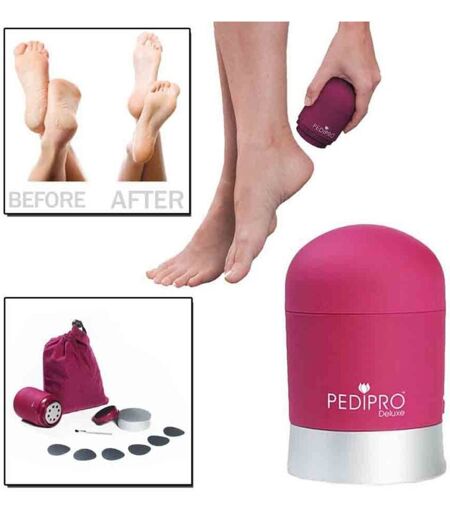 MACCHINETTA PER PEDICURE PEDIPRO DELUXESTRUMENTO PER RINVIGORIRE LA PELLE DEI TUOI PIEDI. OLTRE ALLA MACCHINETTA SONO PRESENTI TESTINE PIU' IL SACCHETTO DA TRASPORTO E I PENNELLINI IN PIU' DISCHETTI PER LA LEVIGATURADC 6VBATTERIE 4X 1,5 STILO AA (non incluse nella confezione).Pedi Pro Deluxe viene fornito in confezione che comprende: 1 x Pedi Pro Deluxe 1 x disco di rasatura in acciaio inox 1 x lucidatura disco 6 x lucidatura pastiglie 1 x custodia per il trasporto 1 x Spazzola di pulizia 1 x Istruzioni in inglese ...