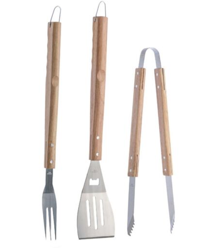 TRADE SHOP TRAESIO - Set 3 Pezzi Utensili Barbecue In Acciaio e Legno Accessori Attrezzi Bbq Tools -