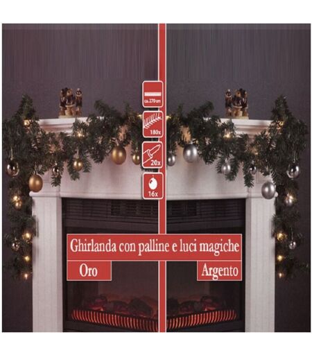 TRADE SHOP TRAESIO - Ghirlanda Natalizia Per Casa Camino Albero Natale 20 Luci e 16 Sfere Vari Colori -