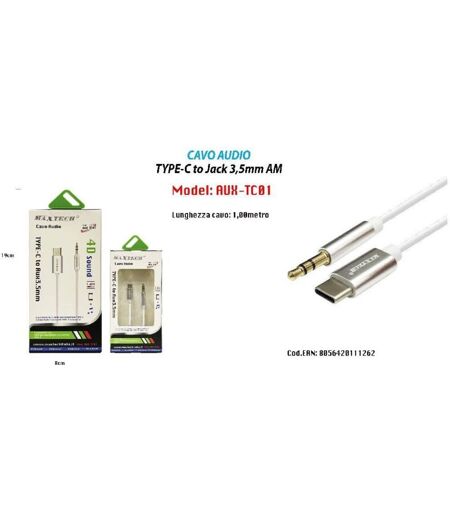 MAXTECH Cavo Adattatore Audio Cuffie Aux Jack 3,5mm Maschio a Type-c Aux-tc01 - -