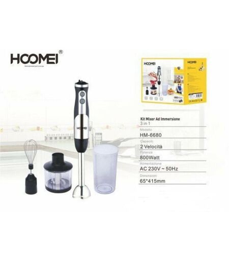 TRADE SHOP TRAESIO - 3 In 1 Mixer Ad Immersione Multifunzione 800 w 2 Velocita' Cucina Hoomei Hm-6680 -