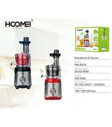 Centrifuga Estrattore di Succo Frutta Verdura 300 Watt Hoomei HM-6930 CucinaCon l'Estrattore di Succo 300W HM-6930 di Hoomei, preparare deliziosi succhi di frutta e verdura non è mai stato così semplice e veloce. Questo strumento pratico è progettato per soddisfare le esigenze dei più appassionati chef in cucina, offrendo prestazioni affidabili e risultati gustosi.Caratteristiche Principali:Rotating Speed: 38-50 RPM - La velocità di rotazione ottimale per estrarre il massimo di succo da frutta e verdura, preservando al contempo tutti i nutrienti essenziali.Potenza: 300 Watt - Una potenza sufficiente per affrontare anche le sfide più impegnative, garantendo risultati uniformi e consistenti.Alimentazione: 220V-240V - 50/60Hz - Compatibile con la maggior parte delle prese elettriche standard, assicurando un utilizzo pratico e senza complicazioni.Dimensioni: 140x158x347mm - Design compatto che si adatta facilmente a qualsiasi spazio in cucina, consentendo un utilizzo efficiente senza ...