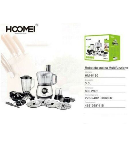 TRADE SHOP TRAESIO - Robot Da Cucina Multifunzione In Abs e Acciaio Inox 800 Watt 3lt Hoomei Hm-6180 -