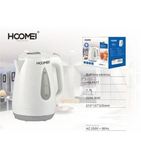 BOLLITORE ELETTRICO 2200 WATT 1.7 LITRI CON BASE GIREVOLE 360° PER BEVANDE CALDEIl bollitore elettrico 2200W 1.7L HOOMEI è un'eccellente aggiunta alla tua cucina per preparare bevande calde in modo rapido e conveniente.SPECIFICHE:Modello: HM-5517Capacità: 1.7 litriPotenza: 2200 wattDimensioni: 213x157x235mmAlimentazione: AC 230V 50HzQuesto bollitore elettrico di alta qualità è progettato per offrire prestazioni affidabili e una grande capacità per soddisfare le esigenze di bevande calde della tua famiglia o del tuo ufficio. Grazie alla sua potenza di 2200 watt, riscalda l'acqua in modo rapido ed efficiente, consentendoti di risparmiare tempo prezioso durante la preparazione delle tue bevande preferite.La capacità generosa di 1.7 litri assicura che tu possa preparare abbastanza bevande per soddisfare le esigenze di più persone, ideale per riunioni familiari, feste o riunioni in ufficio. Inoltre, la sua base girevole a 360 gradi consente un facile posizionamento e un comodo utilizzo da ...