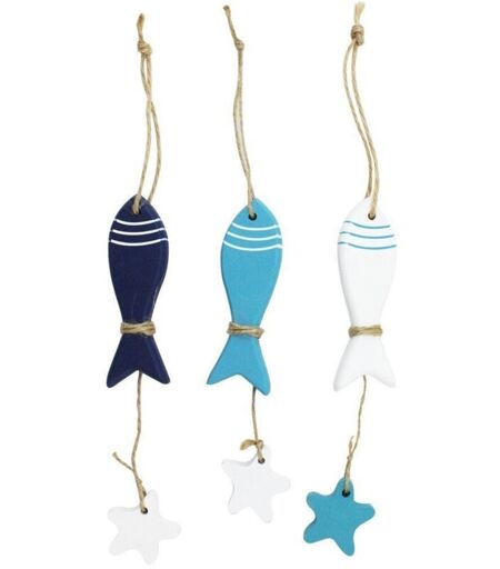 TRADE SHOP TRAESIO - Pesce Con Stellina In Legno Arredamento Decorazione Casa Sea Style -