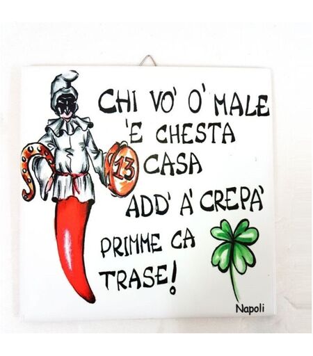 TRADE SHOP TRAESIO Quadretto Piastrella Decorativa Porta Fortuna Ceramica Chi Vo 'o Male e Ches - -