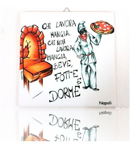TRADE SHOP TRAESIO Quadretto Piastrella Decorativa Porta Fortuna Ceramica Chi Lavora Mangia - -