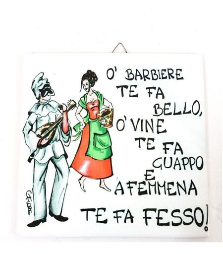 TRADE SHOP TRAESIO Quadretto Piastrella Decorativa Porta Fortuna Ceramica o' Barbiere Te Fa Bel - -